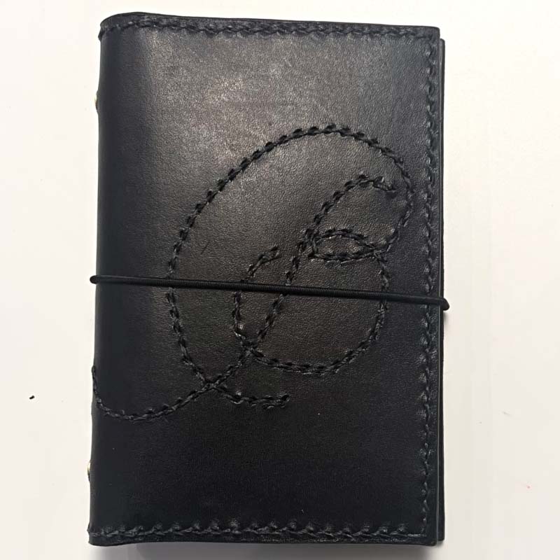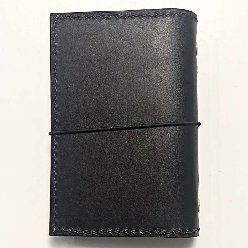This notebook is hand dyed vegetable-tanned leather, satin finish. It develops a patina over time.